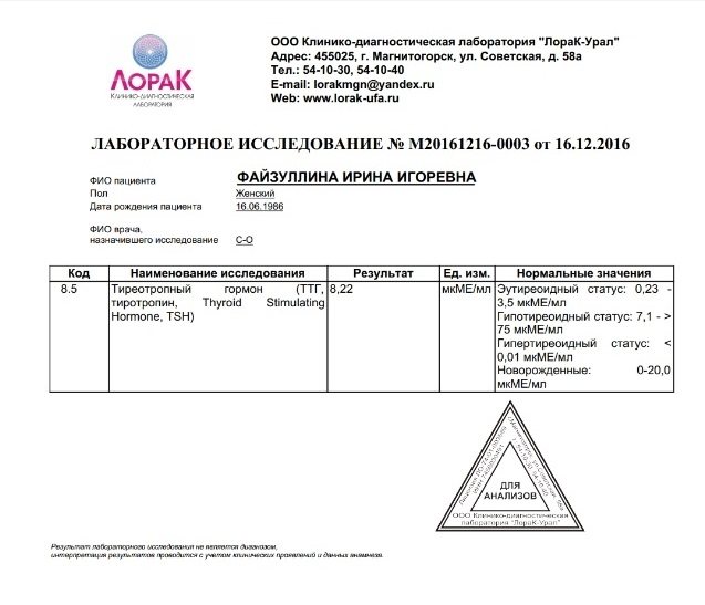 Тиреотропный гормон (ТТГ) — 8,22 мкМЕ/мл