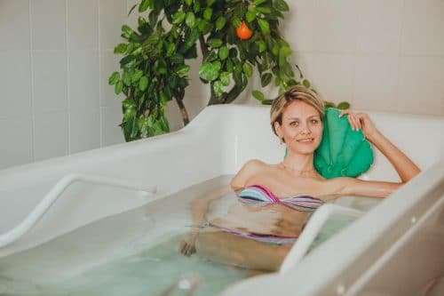 - Во время лечения женщина погружается в 200-литровую ванну с добавленными туда 100 мл концентрата радона.