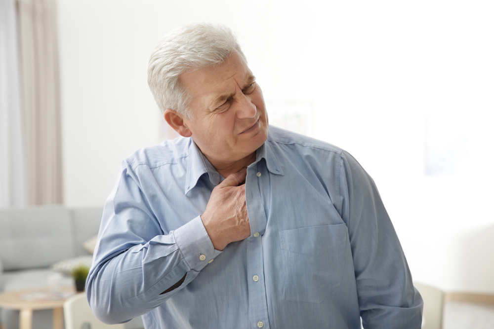 - боль или ощущение давления в грудной клетке;