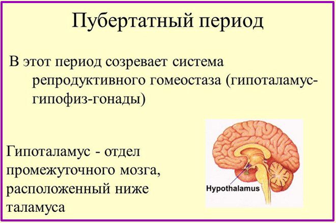 Гипоталамус начинает интенсивно вырабатывать гонадолиберин, который контролирует синтез мужских гормонов. У подростка происходит гормональный сбой.